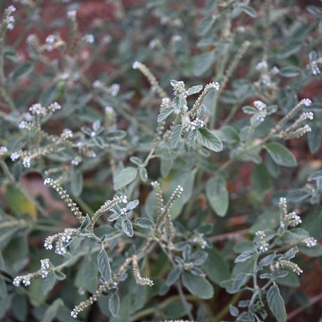 L’Heliotrope d’Europe est une petite plante herbacée de la famille des Boraginacées pouvant mesurer 30 à 50 cm de haut. Toute la plante (tiges et feuille) est recouverte d’un revêtement dense qui lui donne une teinte générale vert blanchâtre très doux au toucher. On suppose qu’une telle pilosité assure à la fois un rôle de protection contre les herbivores et un rôle de limitation des pertes en eau par évaporation. Cela renforce la résilience de l’héliotrope face à la sécheresse estivale.