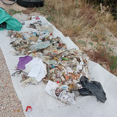 A notre retour à la base, nous avons procédé à la caractérisation et au tri des déchets. Au total, plusieurs kilos de détritus ont été retirés de la nature. Parmi les déchets les plus abondants on retrouve : des bouteilles en plastique, des emballages alimentaire et des bâches en plastique utilisées en agriculture.