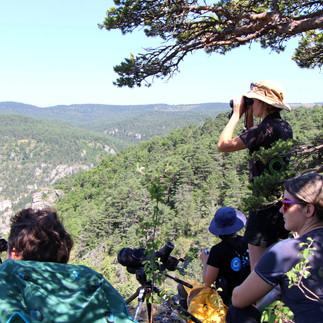 A notre arrivée au bord des falaises sur le Causse Méjan, nous avons rapidement pu observer le ballet aérien des vautours. Au total, nous avons observé une centaine de Vautours fauve dans les falaises avec jeunes de l'année ou dans les airs à la recherche des vents ascendants pour rejoindre des sites d'alimentation.