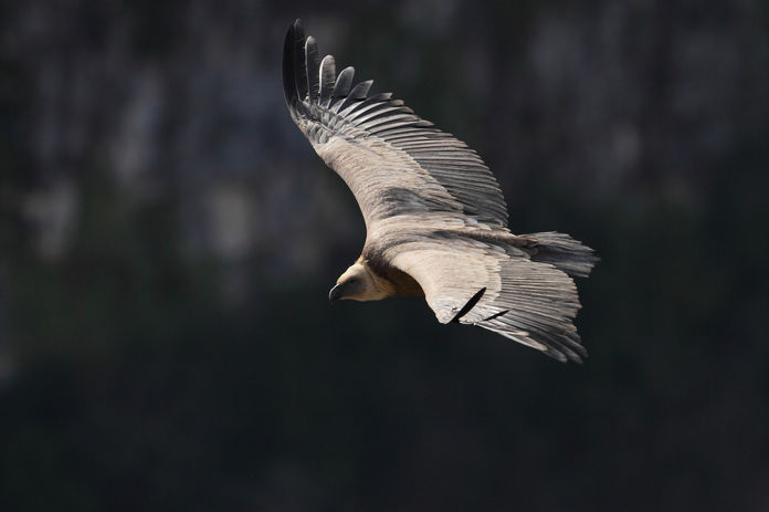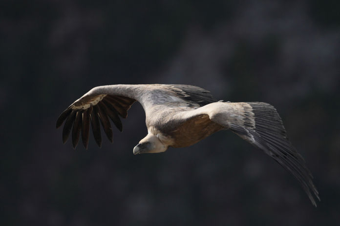 En effet, dès le matin, les vautours fauves vont chercher des courant d’air chauds qui vont leur permettre, en cerclant (vol circulaire dans les ascendants), d’adopter une hauteur suffisante pour repérer des charognes. Le vautour est donc un oiseau pratiquant peu le vol battu, ce qui est un autre critère d’identification.